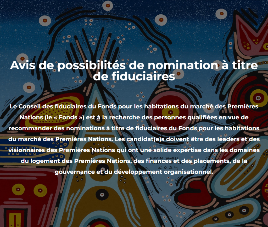 Pour postuler : TrusteeOpportunity@fnmhf.ca
